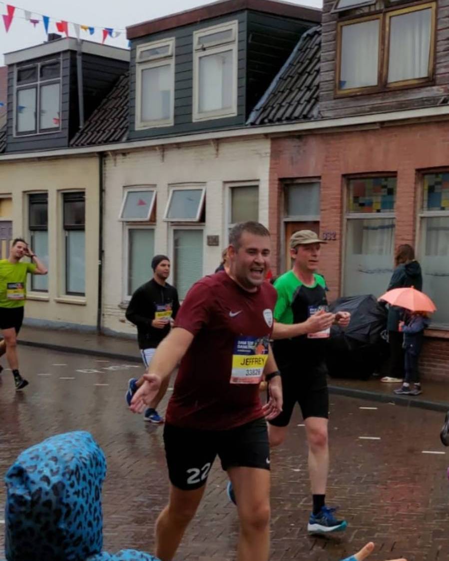 Jeffrey wil alle deelnemers aan de Dam tot Damloop op het hart drukken zich echt zo goed mogelijk voor te bereiden. ‘Er is tegenwoordig heel veel informatie te vinden met voldoende tips. Ik heb deze zelf ook niet altijd volledig doorgenomen, maar ik wil iedereen echt adviseren dit te doen. Daarnaast is het enorm belangrijk om naar je lichaam te luisteren tijdens de race. Doe een stapje terug als het echt niet meer gaat.’